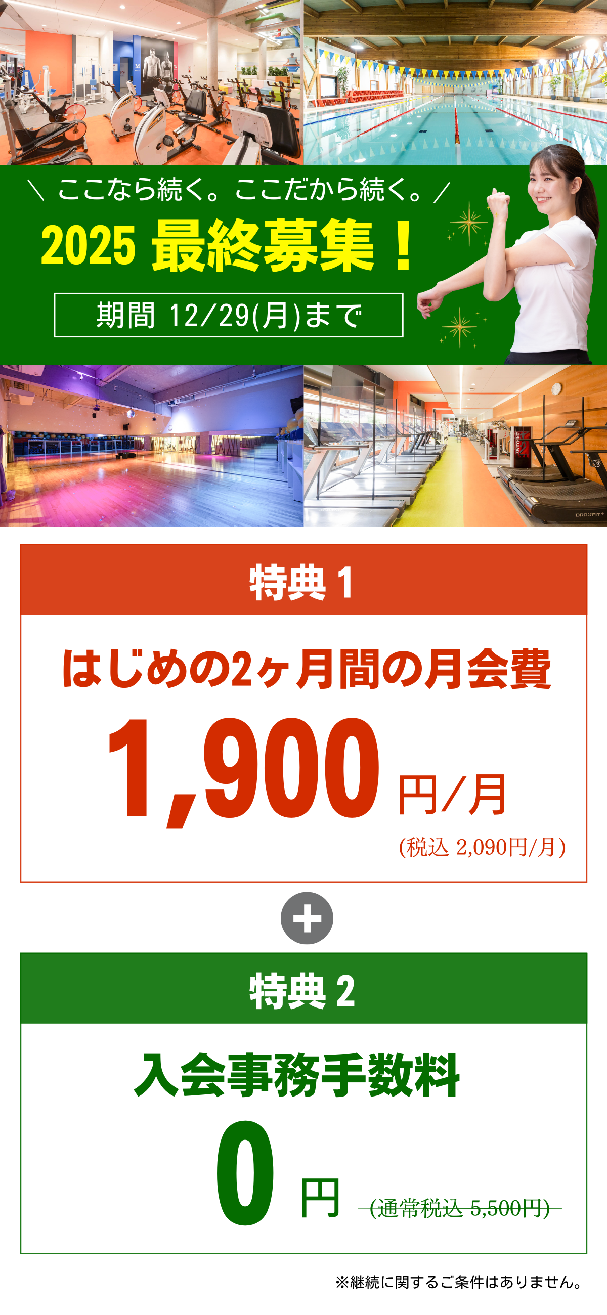 - 入会事務手数料や月会費はキャンペーン内容により金額が異なります。詳しくはお問い合わせください。