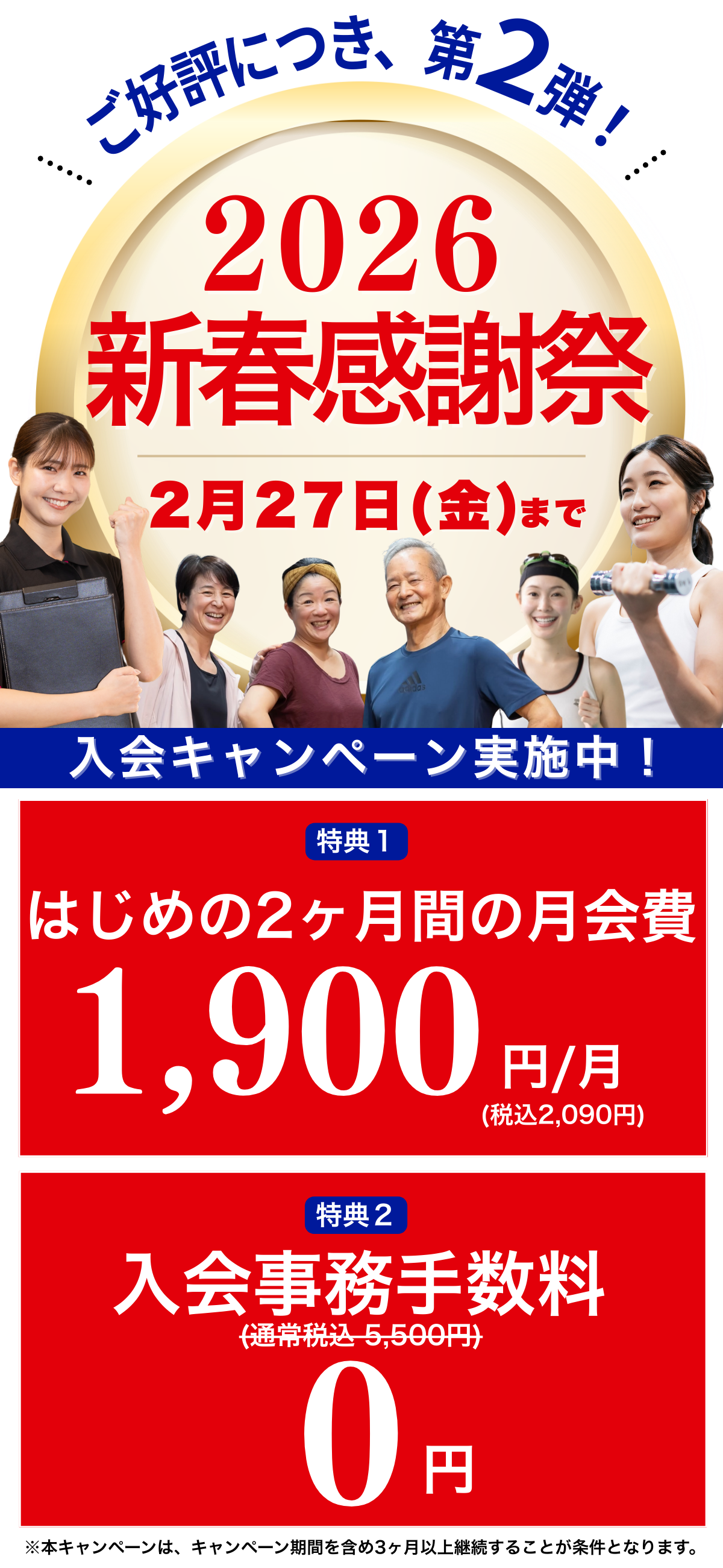 - 入会事務手数料や月会費はキャンペーン内容により金額が異なります。詳しくはお問い合わせください。