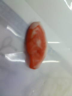 赤い粘土に黄色を少し足して、イクラのスケスケ感を