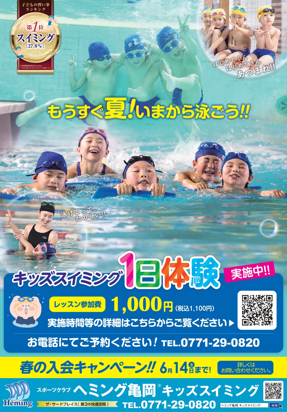 ヘミングのモットーは「泳ぐことの楽しさを知ってもらう」です。是非当スクールのコーチにお任せ下さい。